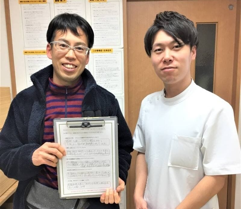 施術を繰り返すことですごく楽になり、2か月後には痺れも取れました!院の雰囲気も明るく挨拶も元気です。